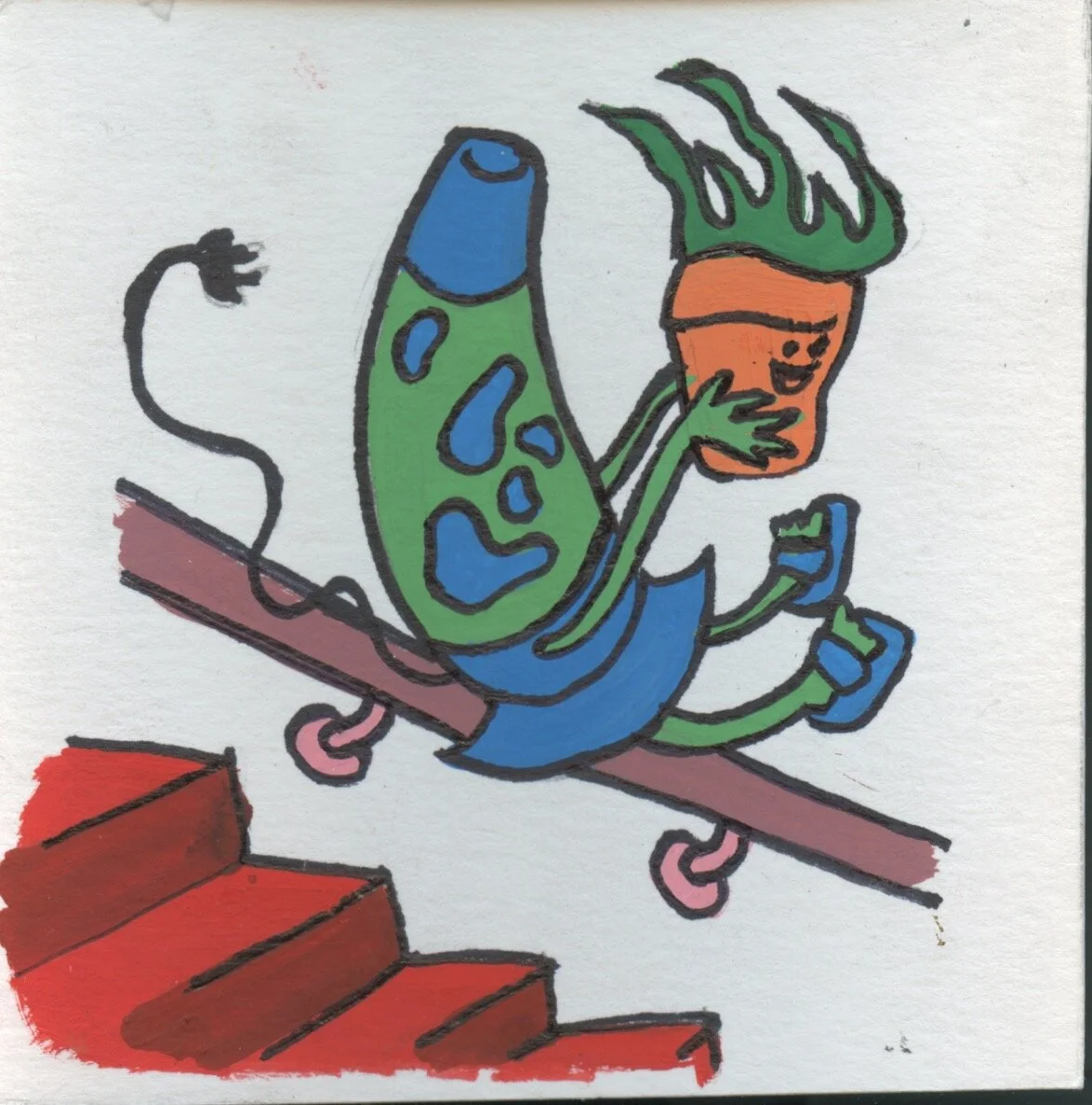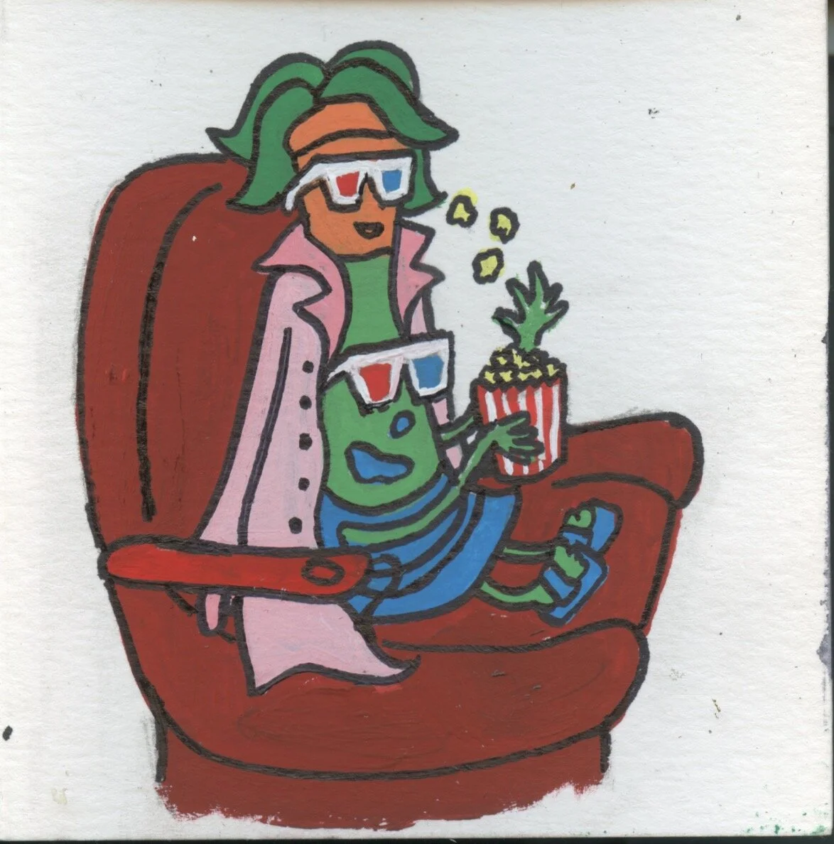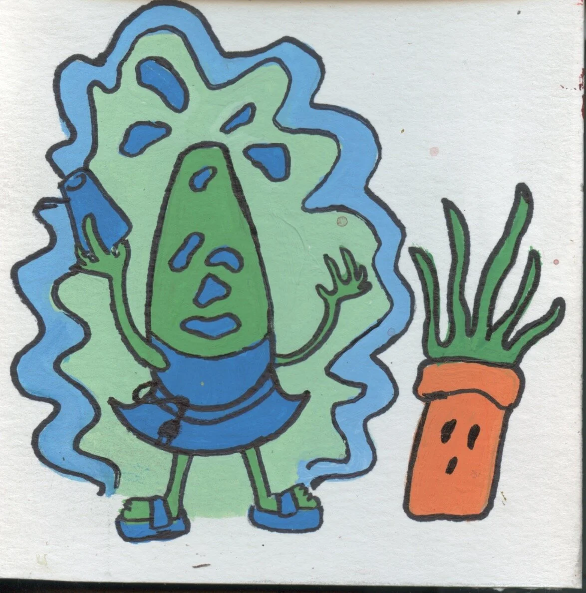 The challenge was to draw a story about inanimate objects that could be used as spot illustrations to go in between columns in a magazine. I chose to go with a lava lamp and a houseplant.